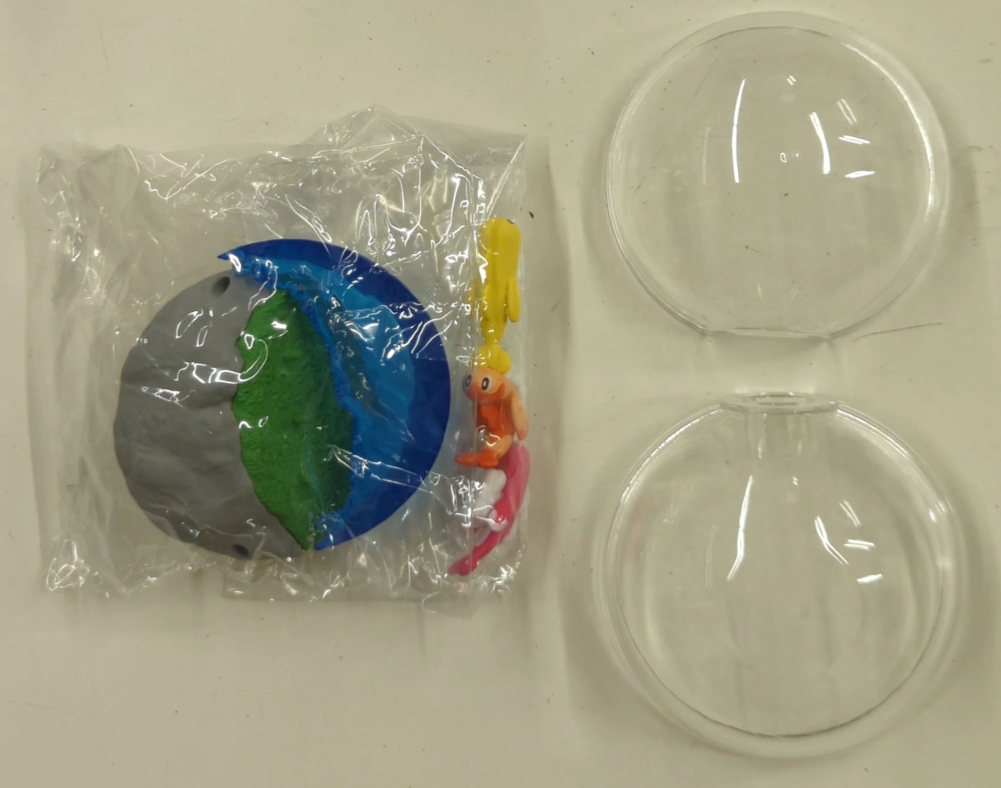 - There may be stickers, price tags, or other markings on the item or packaging that are typical of collectible retail environments.